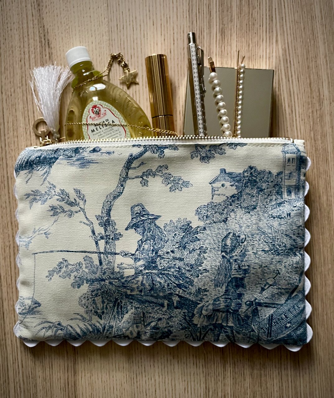 An exclusive print cotton pouch with sartorial details, metal zip, inside pocket and finished with trimmings.