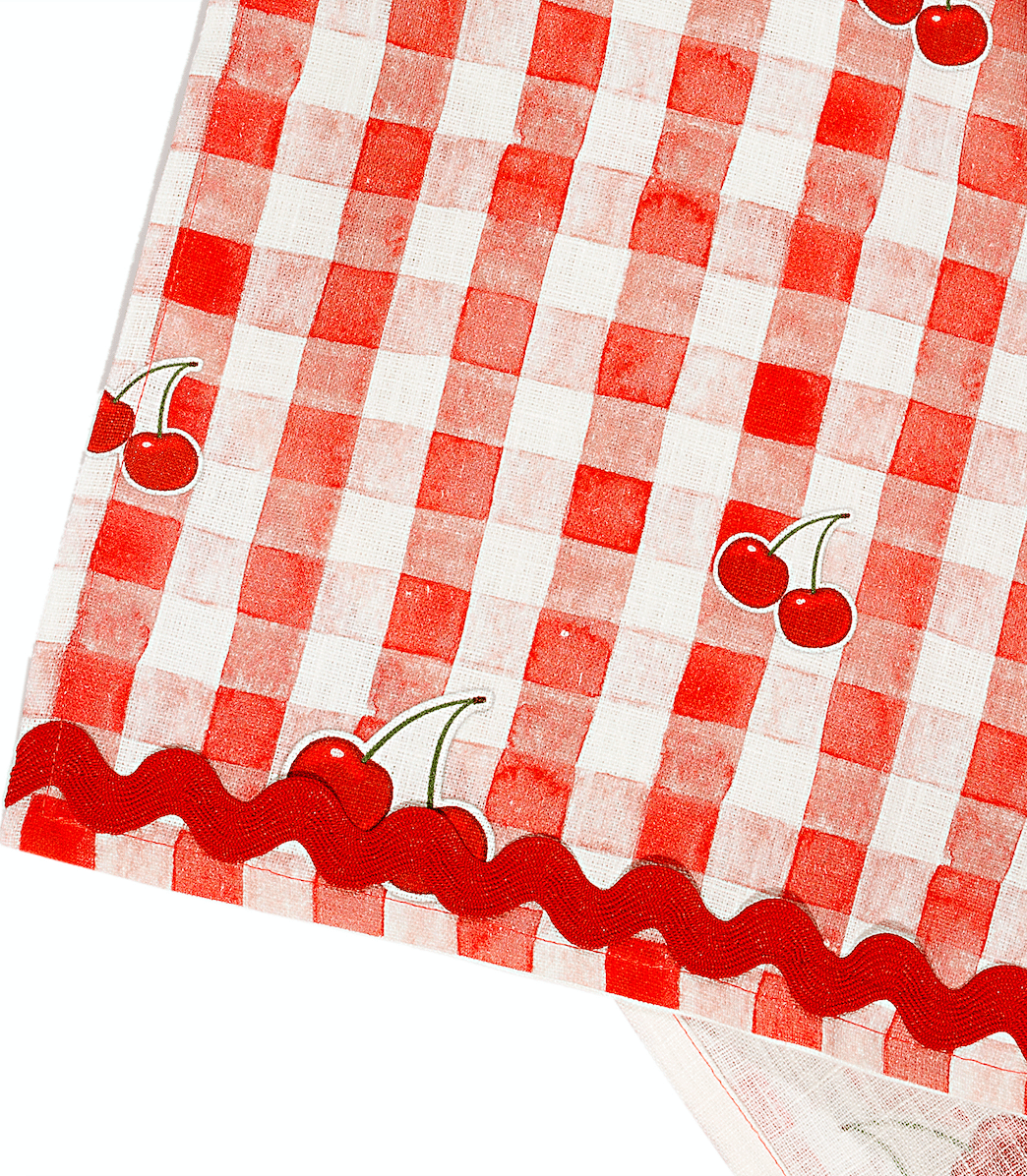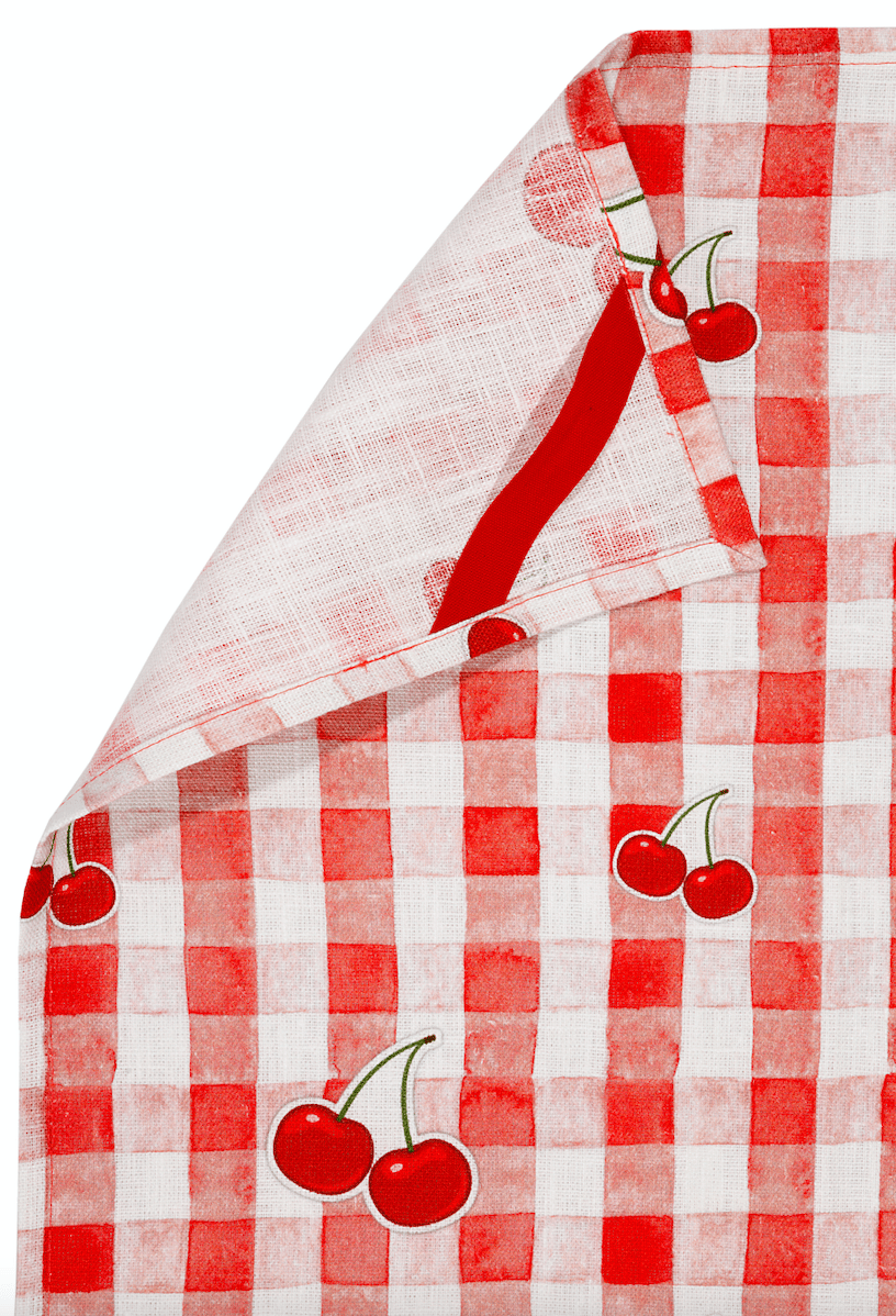 Una tessuto originale ed esclusivo di Milou Milano in lino stampato con il motivo classico e ultratrendy del quadretto Vichy e quello pop delle ciliegie. Questi canovacci sartoriali, rifiniti con passamaneria zig-zag, sono perfetti per aggiungere un tocco di colore e freschezza alla tua cucina. Puoi anche usarli come tovagliette, per la colazione, un brunch o un pranzo all'aperto. Scatena la tua fantasia!!