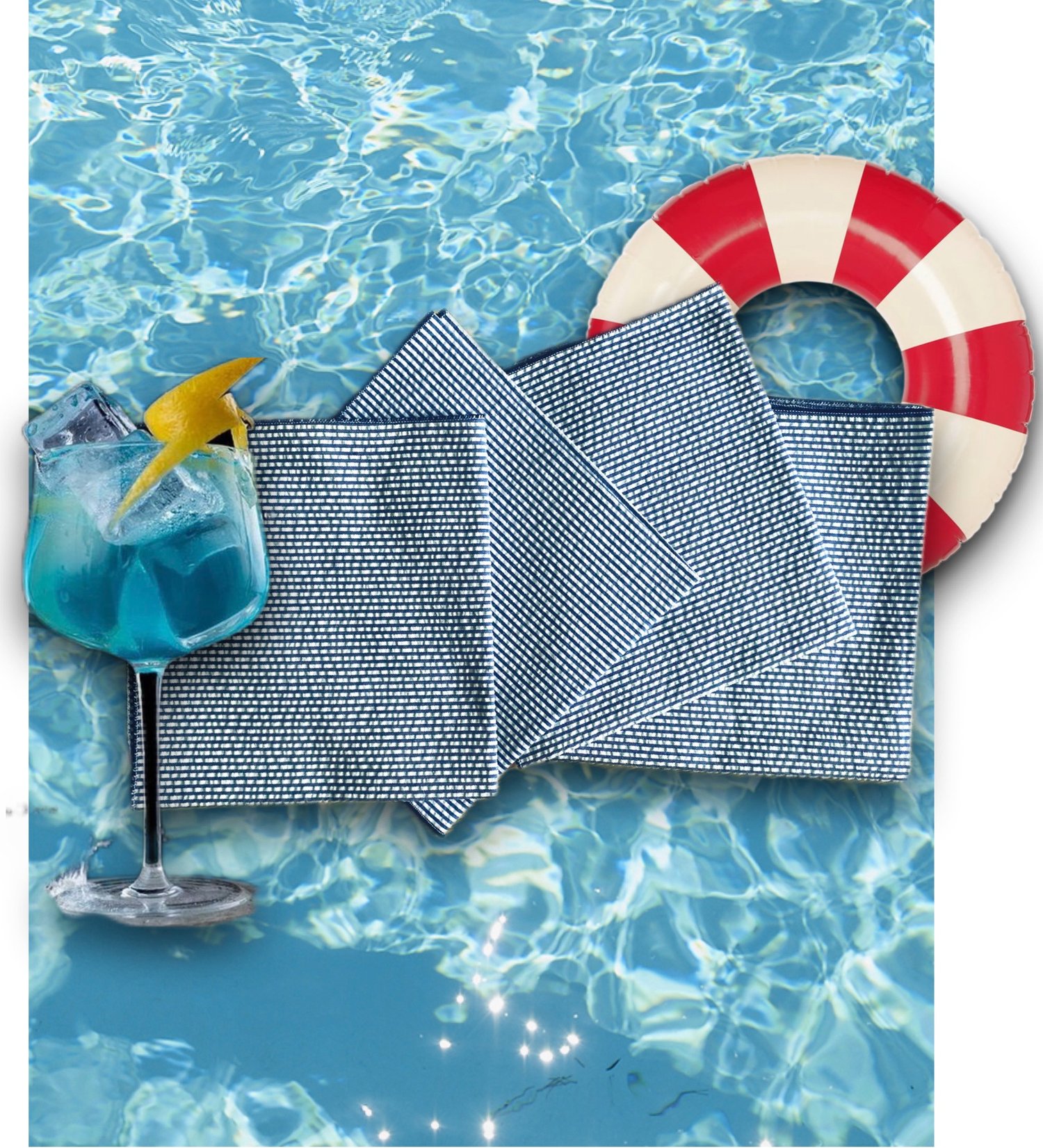 The marinière style cocktail napkins in pure cotton seersucker are perfect for your date with friends. The set consists of 4 napkins.