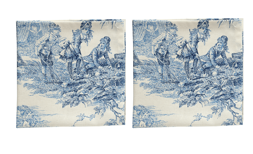 2 Tovaglioli in puro cotone con stampa Toile de Jouy.